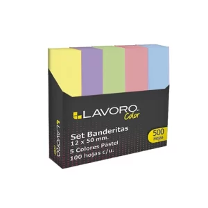 BANDERITA ADHESIVA LAVORO 12X45MM 5 COLORES