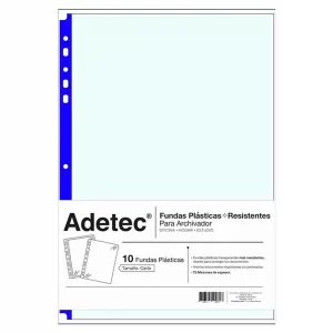 FUNDA PLASTICA CARTA BORDE AZUL ADETEC 10 UNIDADES
